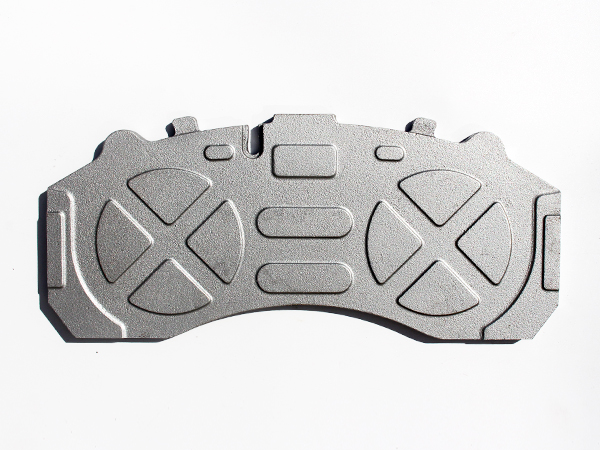 2.整體近似橢圓形的鋼背分為前部面和背部凹面,鋼背前部面上兩側對稱設有橫卡鉗活塞位置端、豎卡鉗活塞位置端的組合。